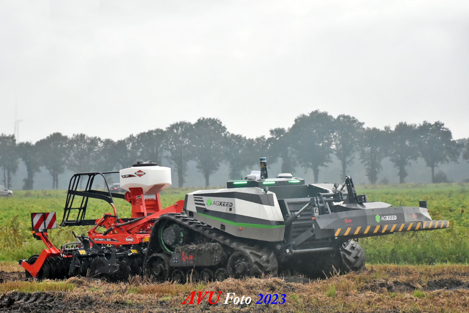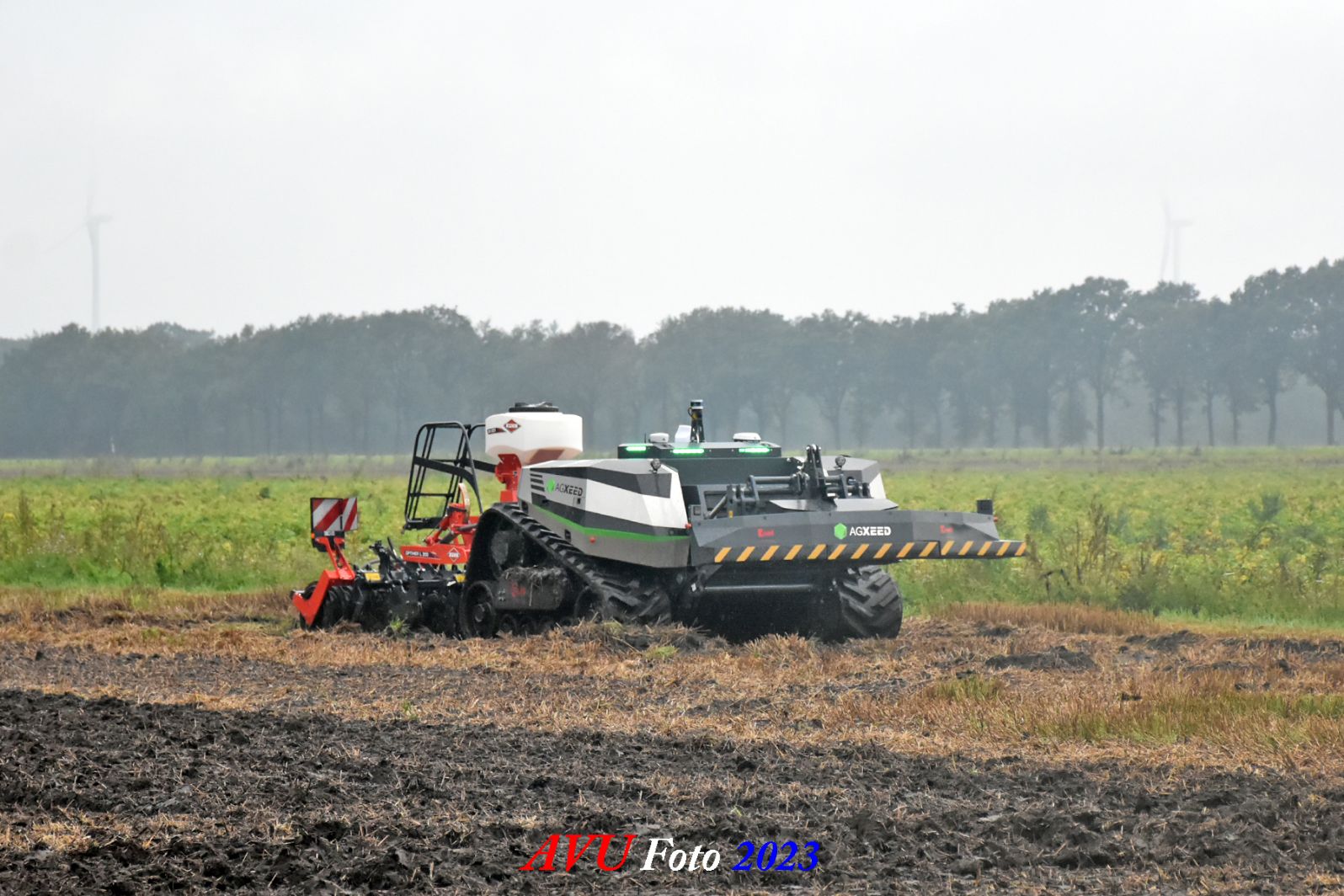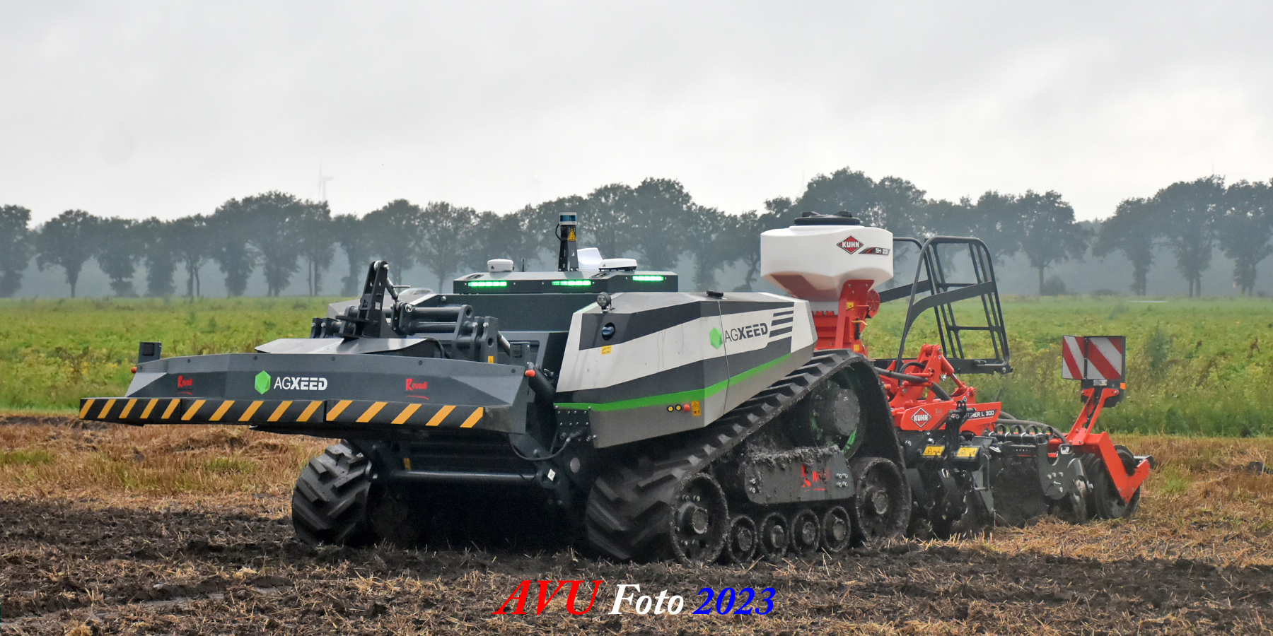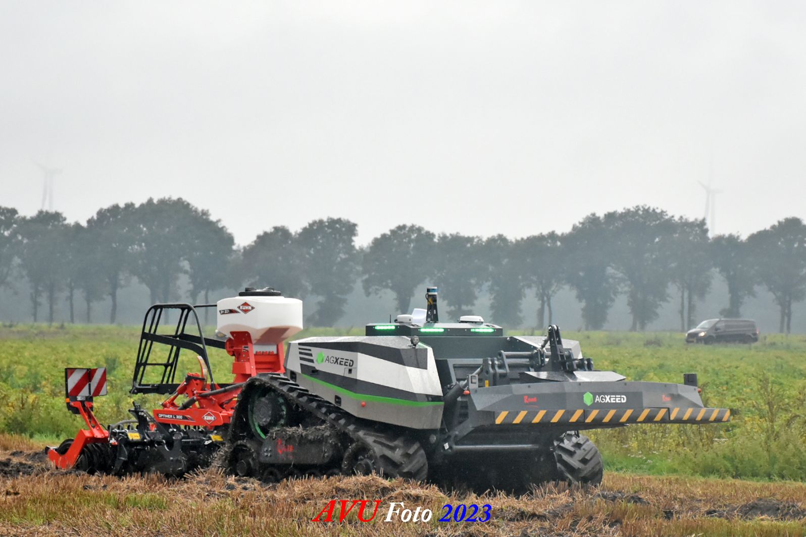 De AgXeed Agbot 5.115T2 aan het werk bij de Precision Days van Jacob van den Borne, zowel handbediend als autonoom in werking. Helaas wat mindere weersomstandigheden. (Dank aan Rob, Rovadi)