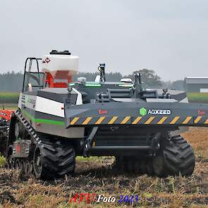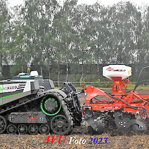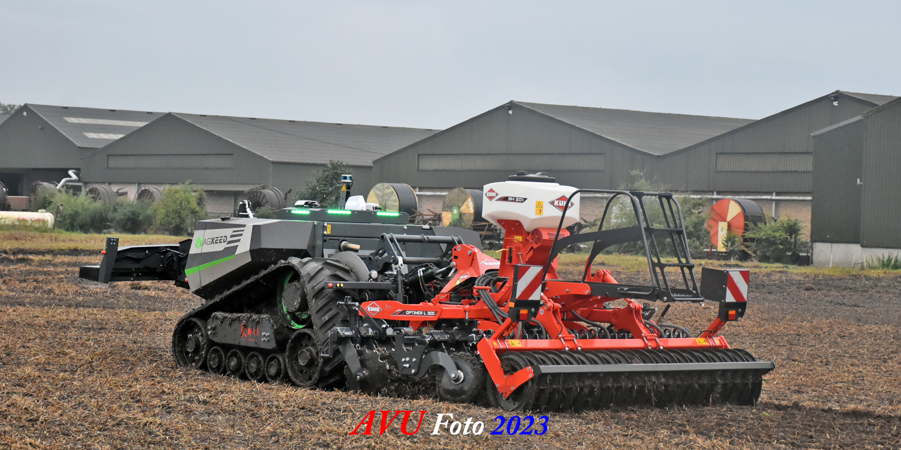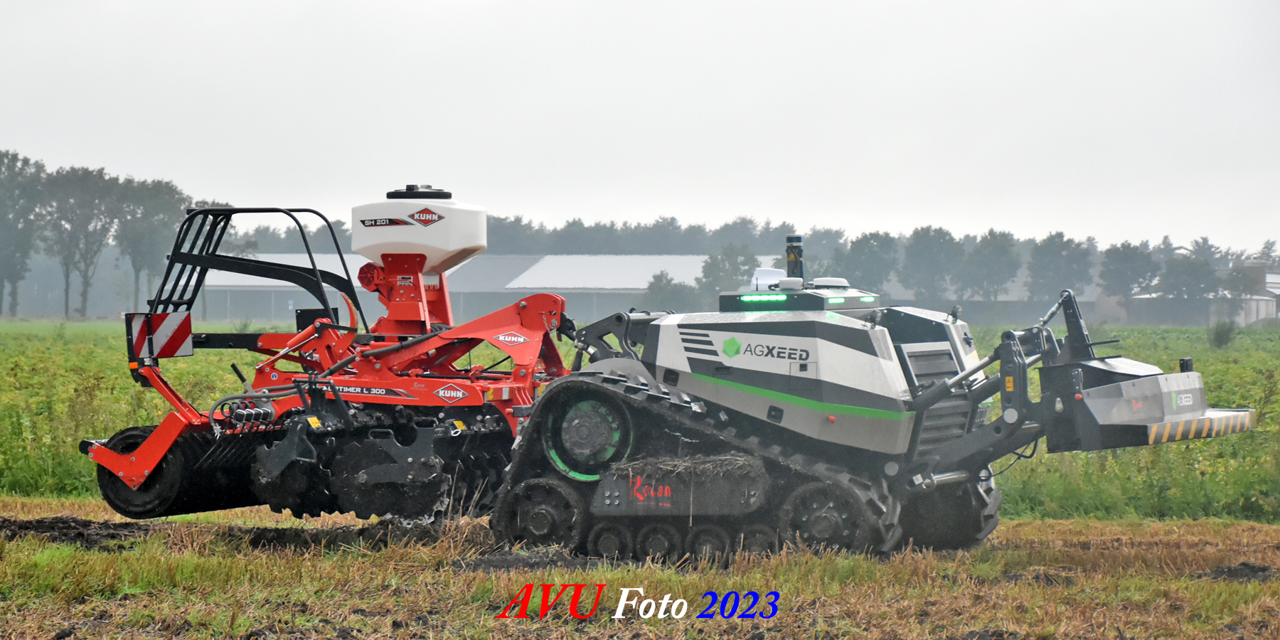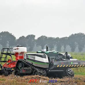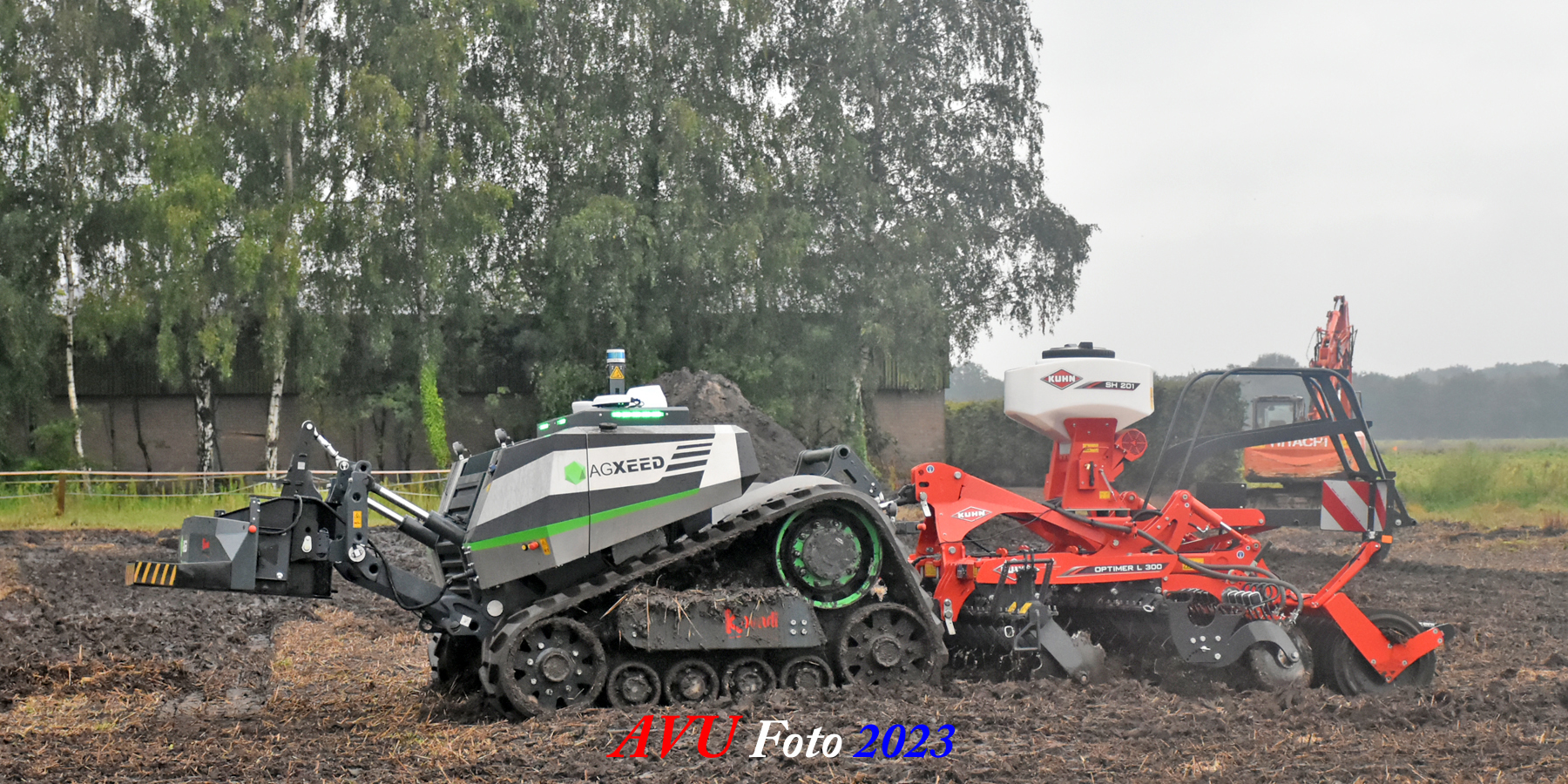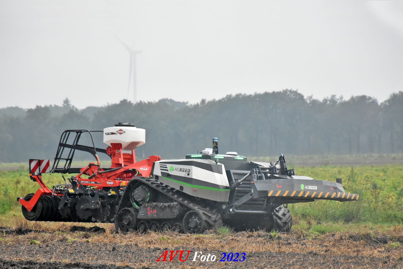 De AgXeed Agbot 5.115T2 aan het werk bij de Precision Days van Jacob van den Borne, zowel handbediend als autonoom in werking. Helaas wat mindere weersomstandigheden. (Dank aan Rob, Rovadi)