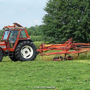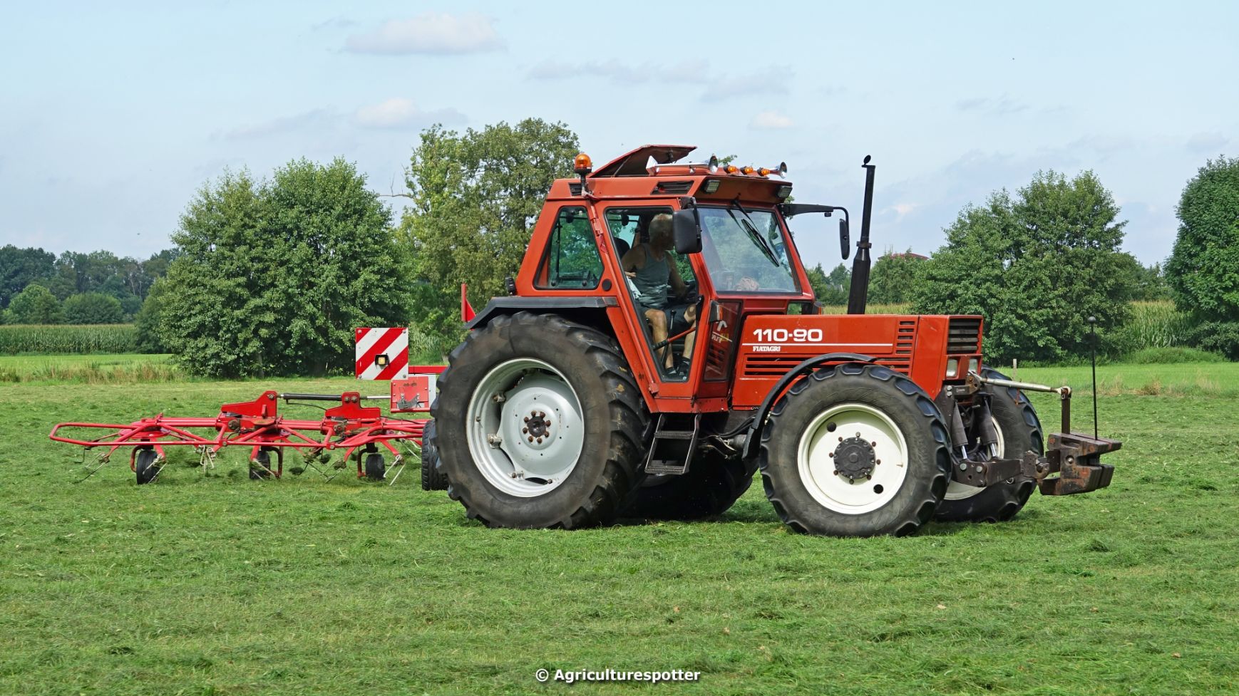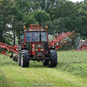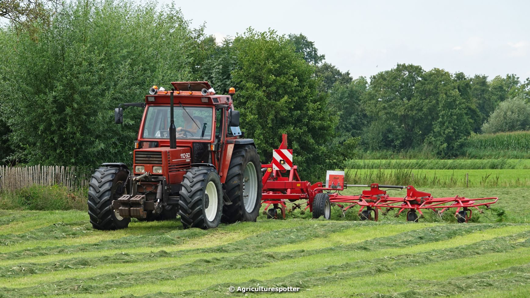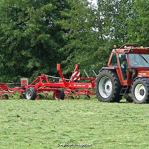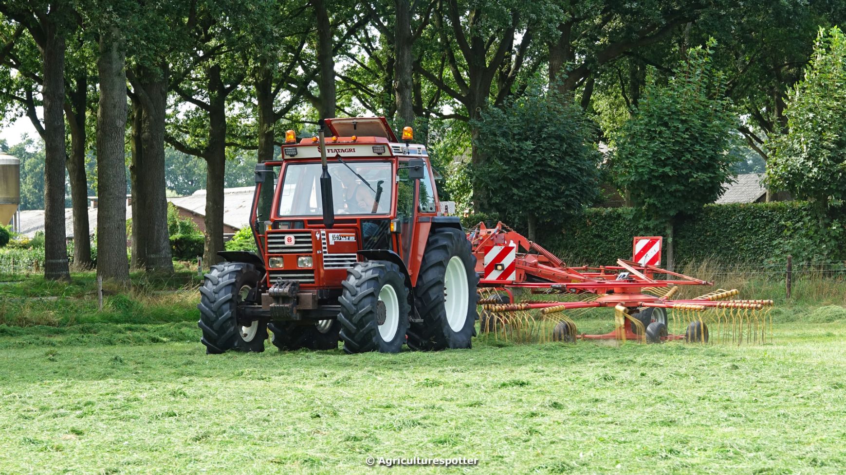 Gras schudden met een Fiat 110-90 en een Lely Lotus 900-schudder. Gras harken met een Fiat 85-90 Turbo DT en een Niemeyer Twin 850-VS-hark. Zomerstalvoeren met een Fiat 85-90 en Deutz-Fahr KM 3.27 FS-frontmaaier en een Schuitemaker Rapide-opraapwagen van Van Brummelen in Ederveen (GD).
