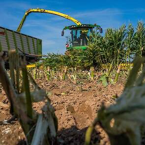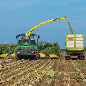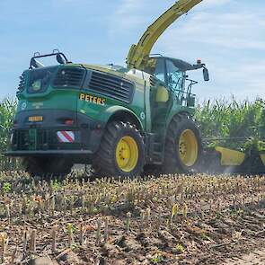 Loonbedrijf Peters uit Landgraaf (LB) hakselt dit jaar met deze 9900i met 970 pk.