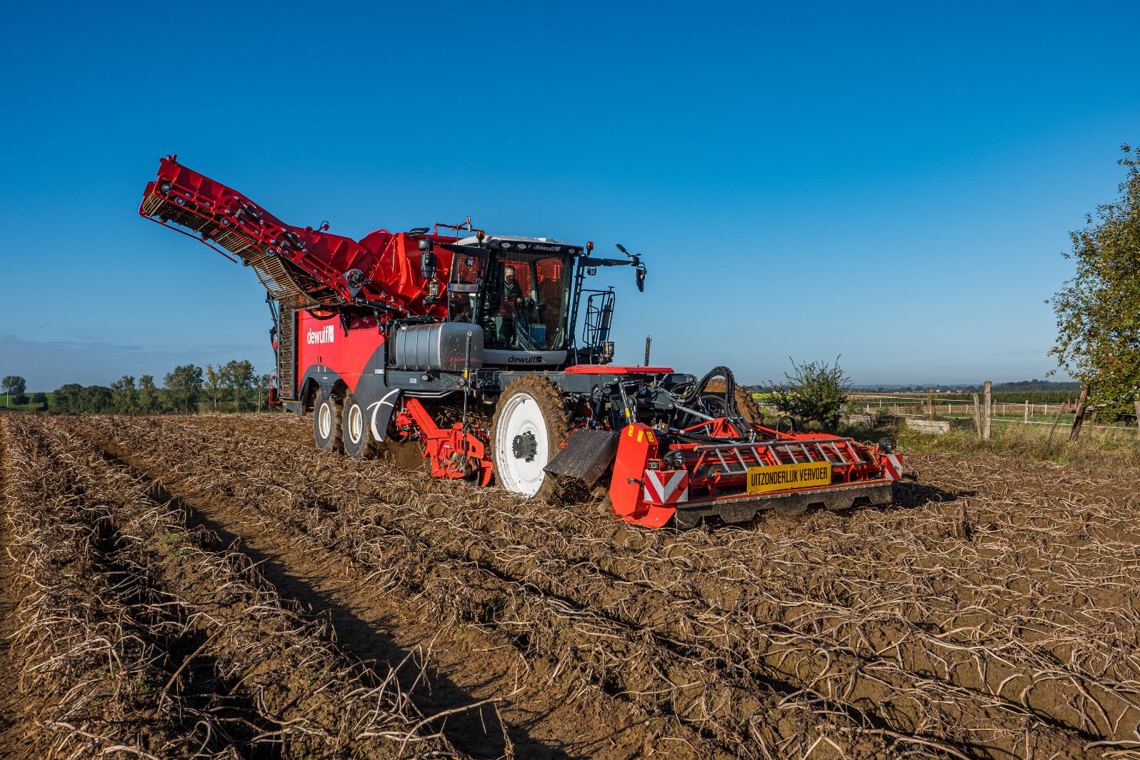 Dewulf neemt met de Enduro ook zijn 4-rijige zelfrijder op banden mee, die uitblinkt door ongeziene prestaties op drie assen. De rooier vormt een evenwichtige mix van jarenlange expertise in de rooitechniek en inventieve technologie. Zo combineert de machine onder meer een excellente zeefcapaciteit met een traploos instelbare hellingsgraad op de reinigingsmodule. Met een spectrum tussen 0 en 12 graden kan de chauffeur vanuit de cabine inspelen op de gewenste reinigingscapaciteit van deze module. De axiaalmodule getuigt verder van grote flexibiliteit, aangezien die onder elke hellingshoek gebypasst kan worden. Met een praktische inhoud van een grote 9 ton is de tweedelige bunker van de 4-rijer bovendien de grootste binnen zijn marktsegment. Verder kan de machine dankzij de Soil-Saver technologie excellente cijfers voorleggen op het vlak van bodemdruk (max. 1,8 kg/ cm²). Een optimale rooi-ervaring voorziet de Enduro met behulp van de gebruiksvriendelijke control unit, de ergonomische N-Joystick en het grote, intuïtieve scherm.