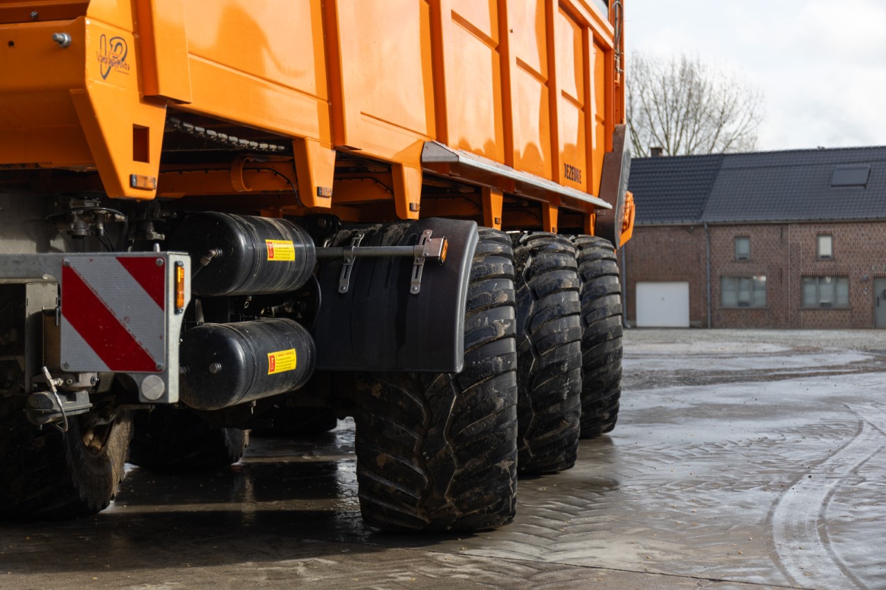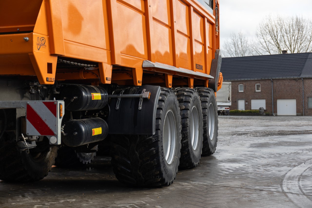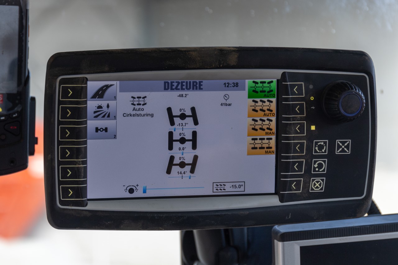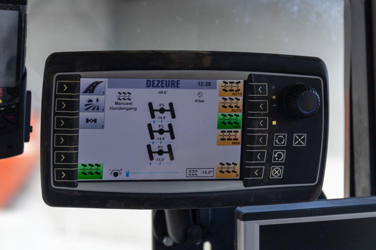 De in-house ontwikkelde elektrische sturing maakt gebruik van een stuurstang tussen trekker en wagen. Om deze reglementair te koppelen, wordt deze gekoppeld aan de k50 van de trekker. De stuurstang meet door middel van een potentiometer de draaihoek van de trekker tegenover de wagen, via een controlebox worden de assen naar gelang gestuurd. Via de bediening in de cabine kan de elektrische sturing echter ook manueel gestuurd of gecorrigeerd worden. Dit is bijvoorbeeld handig wanneer gemanoeuvreerd moet worden op kleinere bedrijven of in smalle straten. In het verleden was de elektrische sturing bij tandem op de tweede as en bij 3-asser op de eerste en derde as al beschikbaar. Nieuw is dat nu de elektrische sturing op alle assen mogelijk is. Omdat alle assen voorzien zijn van sturing kan via de bedieningskast de wagen ook in hondegang gestuurd worden. Hierdoor lopen de wielen, zowel bij een twee- als bij een drieasser, elk in een apart spoor. Zo wordt het gewicht van de wagen (en lading) over een grotere oppervlakte verdeeld en de bodem ontlast. Bij het draaien op de kopakker of voor transport over de weg volstaat een druk op de knop voor een automatische uitlijning.