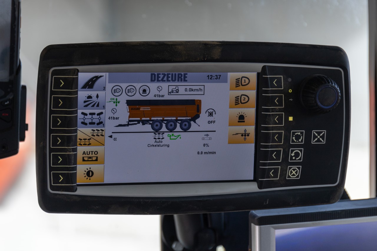 De elektrische sturing is als optie beschikbaar op de tandem- en tridem-wagens van Dezeure. De bediening van de sturing verloopt via de Secu-Touch-controllers. Deze maakt niet alleen manuele bediening mogelijk, maar bevat ook een heel aantal geautomatiseerde functies. De effectieve sturing van de assen verloopt via het hydraulisch systeem van de trekker.