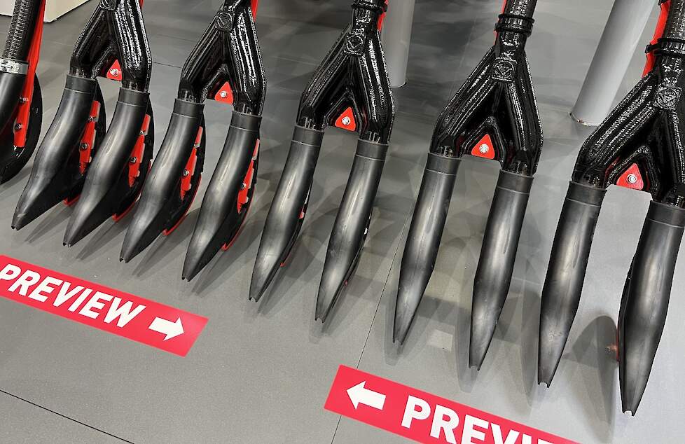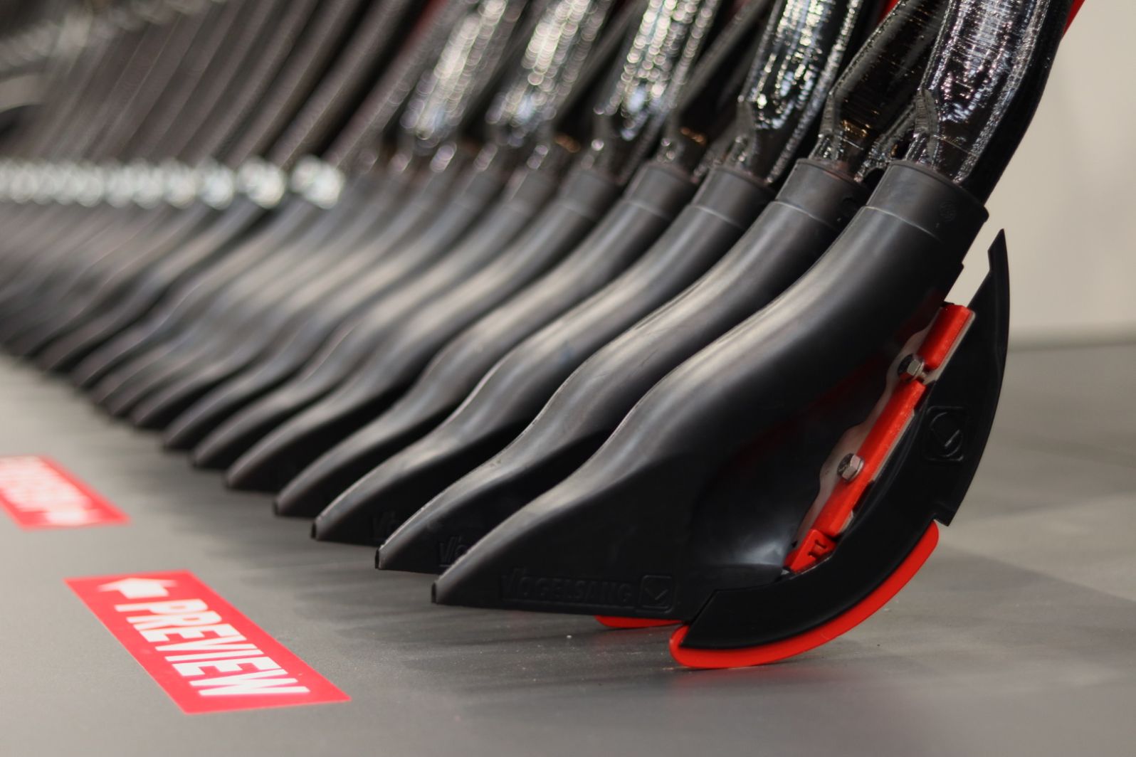 Om ervoor te zorgen dat het gewicht van de Y-debietverdeler op hetzelfde niveau blijft als de standaard gleuf, heeft Vogelsang gekozen voor een lichtgewicht constructieconcept. Ahlers: “Met het ontwerp van deze uitlopen en het gebruik van een slijtvaste speciale kunststof slaan we nieuwe wegen in. In combinatie met een blad van Hardox-staal zijn de uitlopen zowel licht als robuust.” Gebruikers zullen profiteren van een lange levensduur en lage kosten voor eventuele reserveonderdelen. Dit komt doordat het stalen blad apart kan worden vervangen. De DoubleFlow-optie kan eenvoudig achteraf uitgebreid worden en zal vanaf mei 2024 beschikbaar zijn voor de sleepvoetsystemen UniSpread en BlackBird.