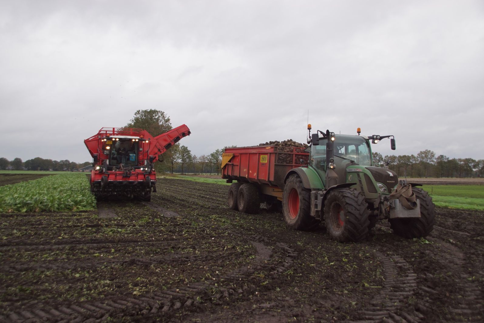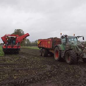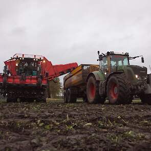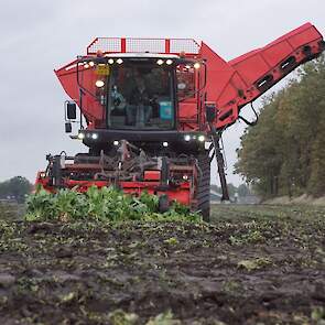 Loonbedrijf Meppelink uit Dalerveen (DR) aan het suikerbieten rooien.
