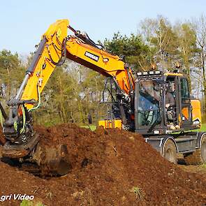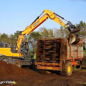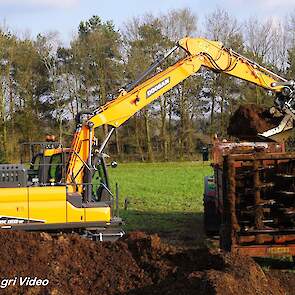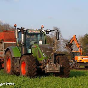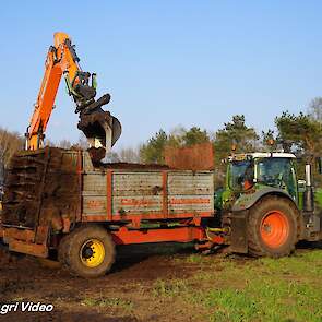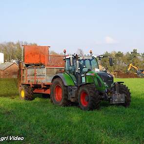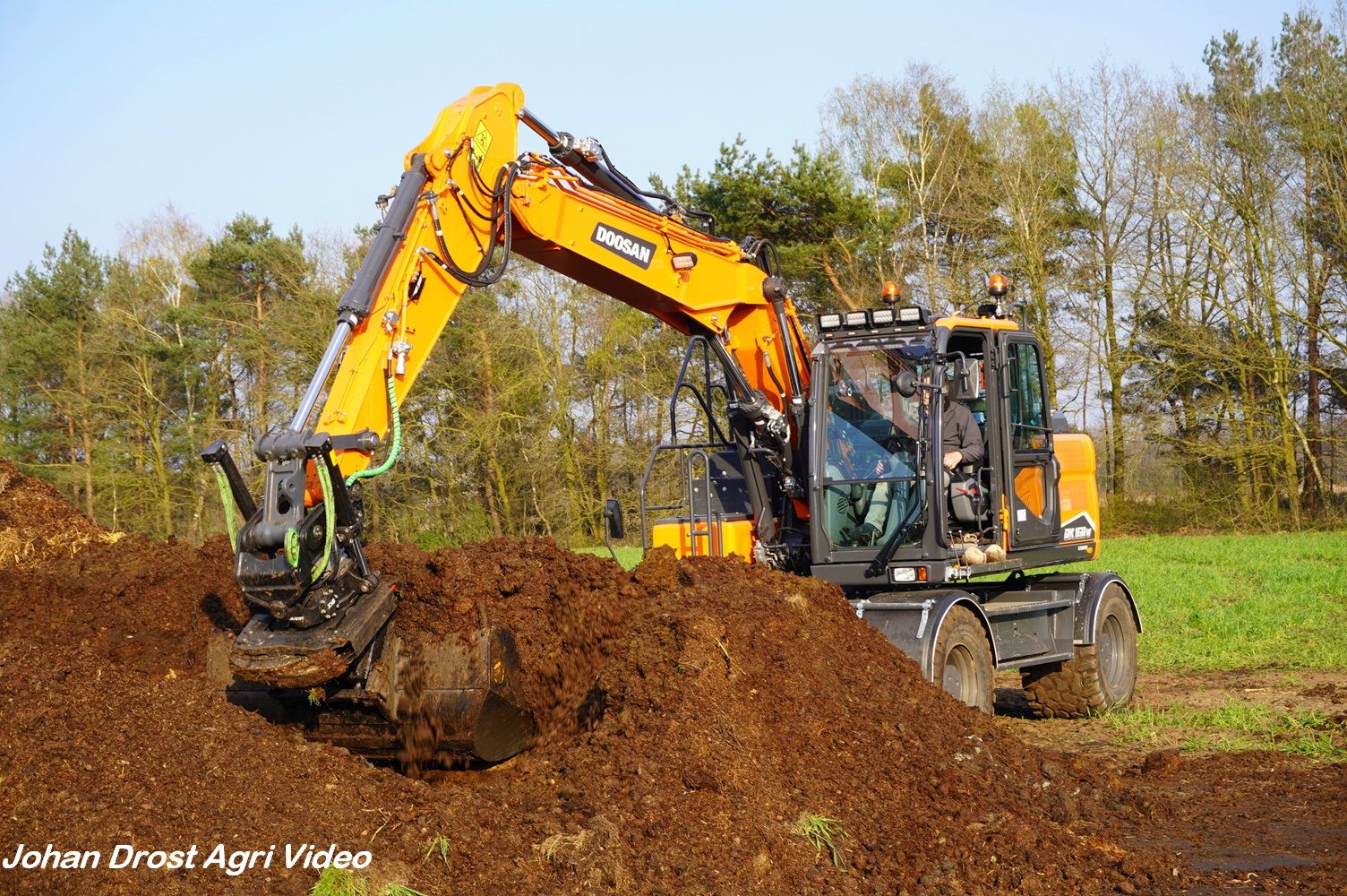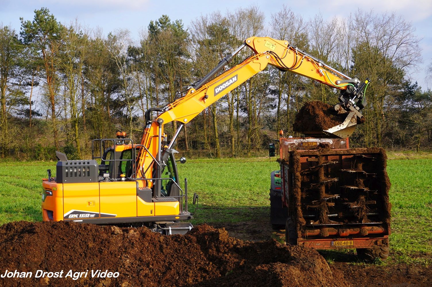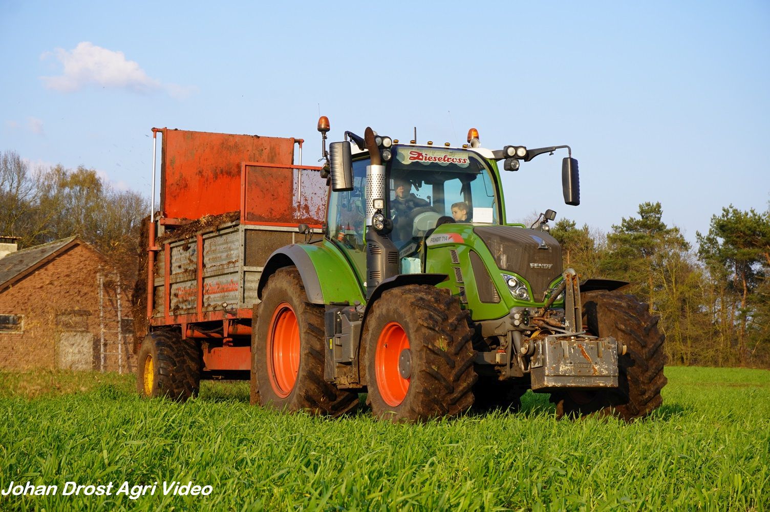 Loonbedrijf P. van den Hardenberg uit Elspeet (GD) en Van de Steeg Grondverzet uit Uddel (GD) aan het vaste mest laden en strooien met een Fendt 714 Vario en Schuitemaker Calypso 80-meststrooier. Voor het laden een Doosan DX 160W.