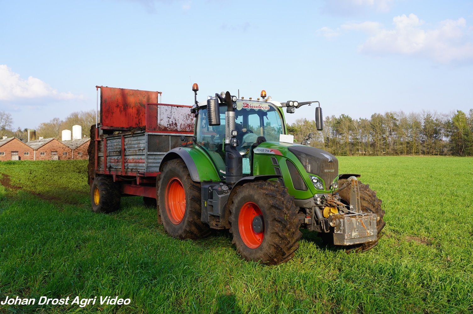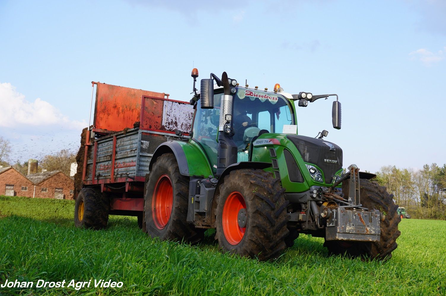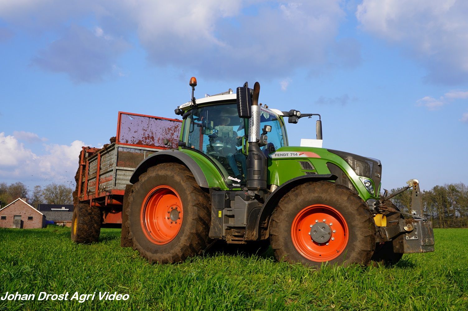 Fendt 714 Vario en Schuitemaker Calypso 80-meststrooier