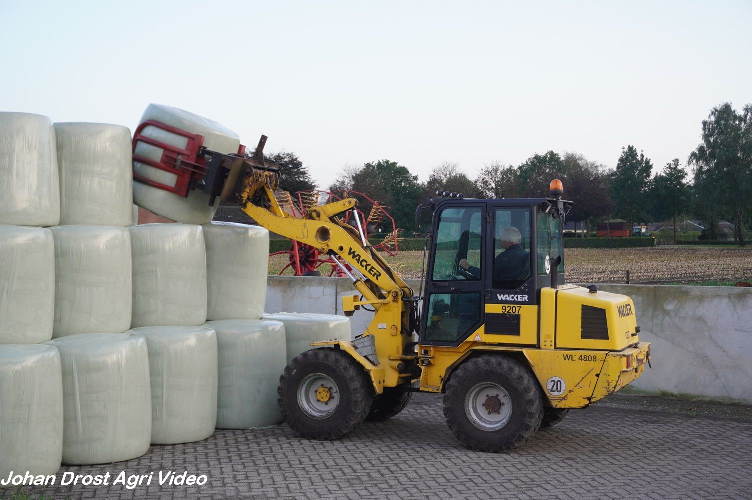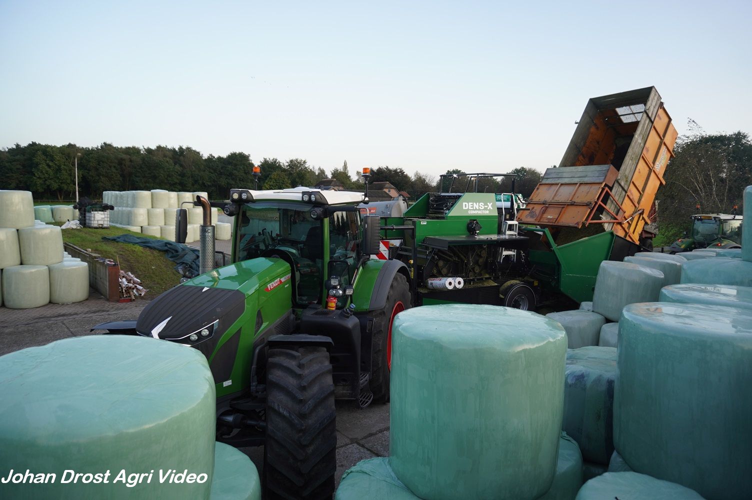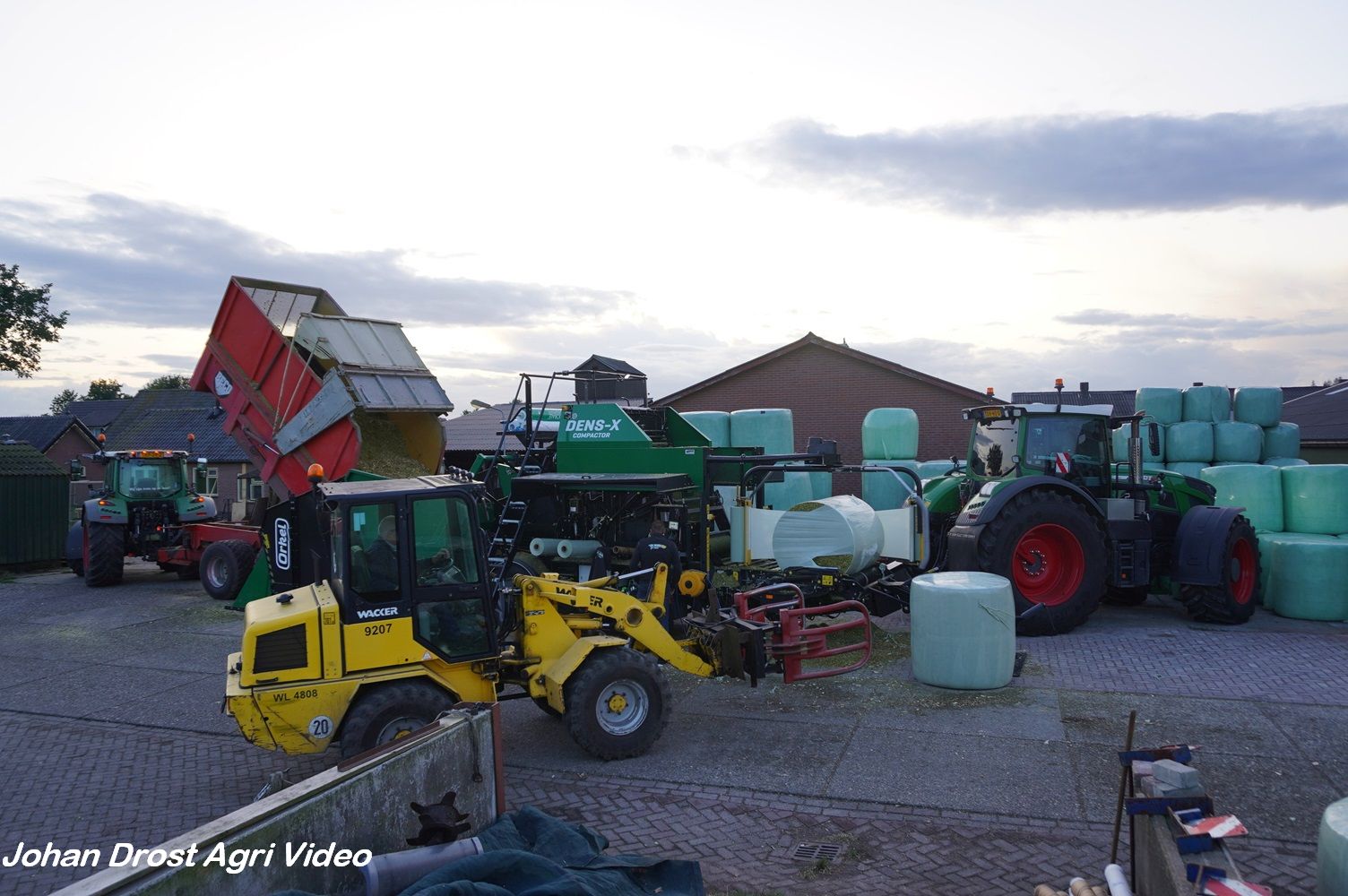 Agrar Services Termaat Terpac CV uit Putten en Bloemendal Dienstverlening uit Elspeet aan het maïsbalen persen en wikkelen met een Fendt 942 Vario en een Orkel Dens-X compactor. Aanvoer met Fendt 312 Vario TMS, Fendt 313 Vario en Fendt 314 Vario. Voor de afvoer een Wacker WL 4808.