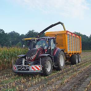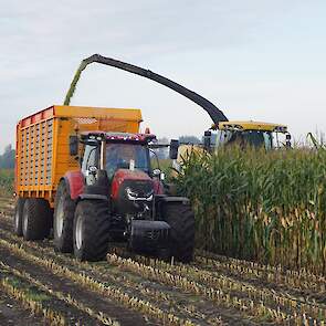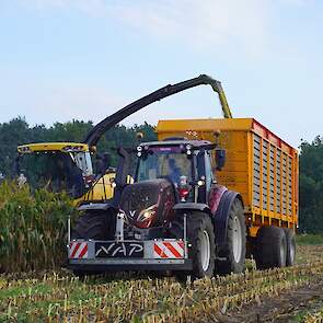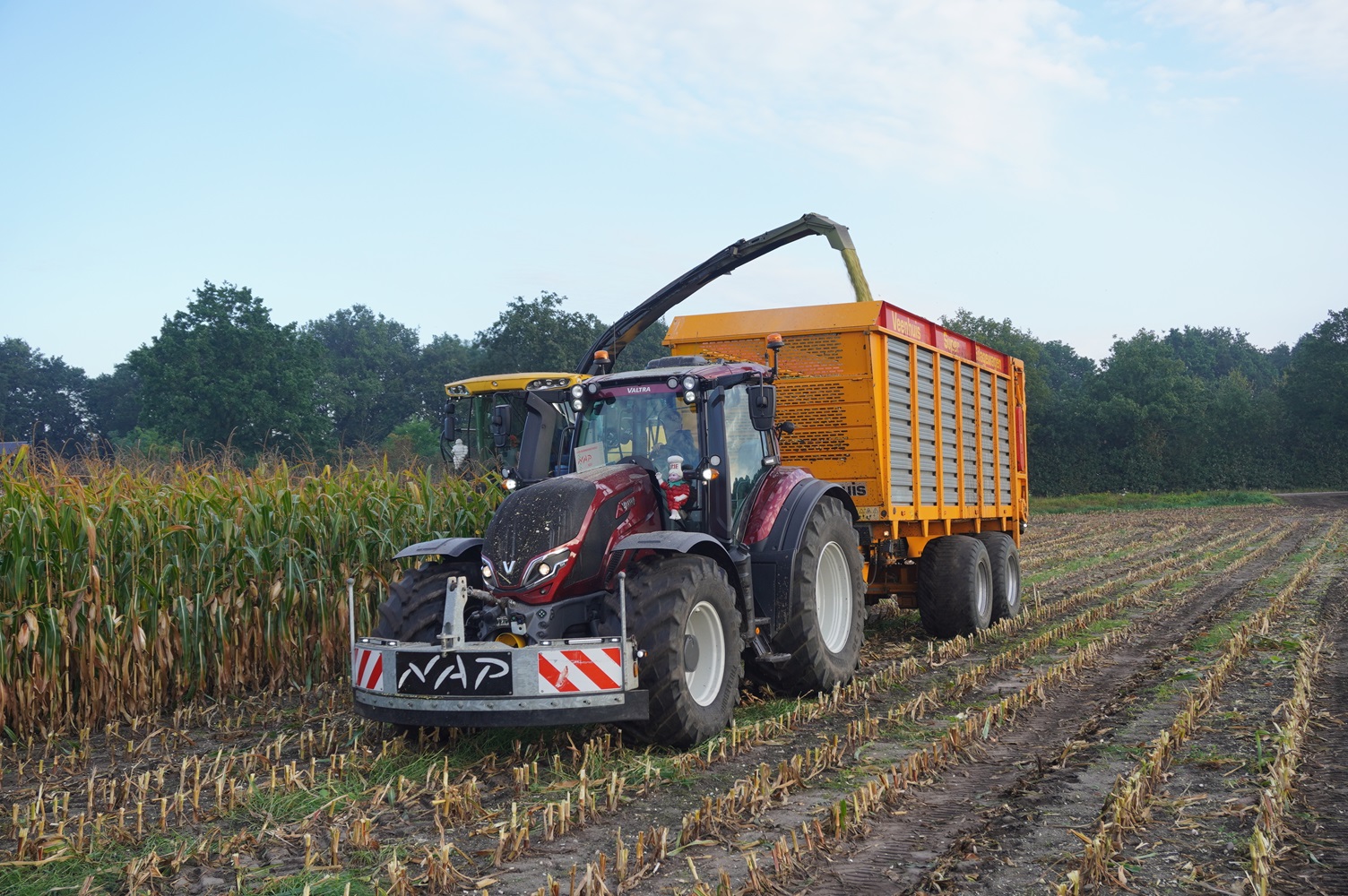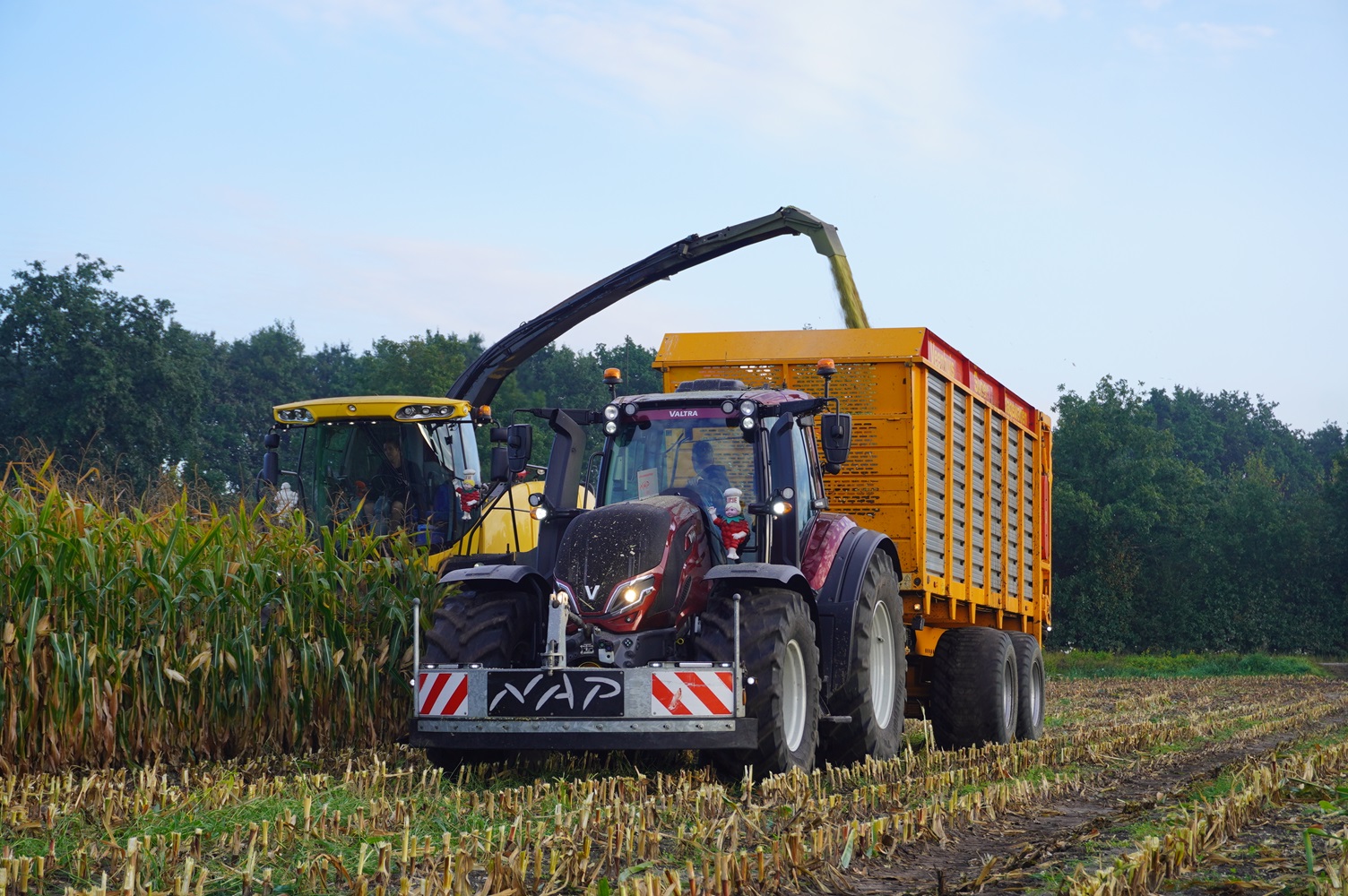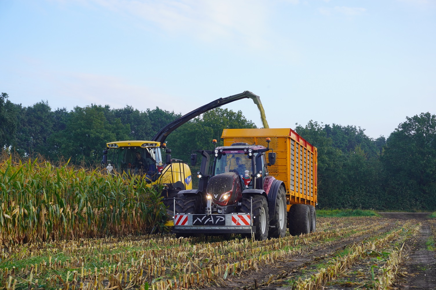 Loonbedrijf Nap uit Ede (GD)/ NLR Agri aan het maïs hakselen met een New Holland FR600, Valtra T215 en Case IH Puma 150 met Veenhuis Super-silagewagens.