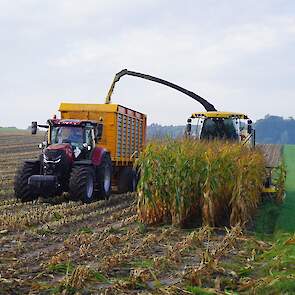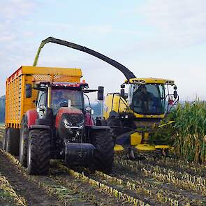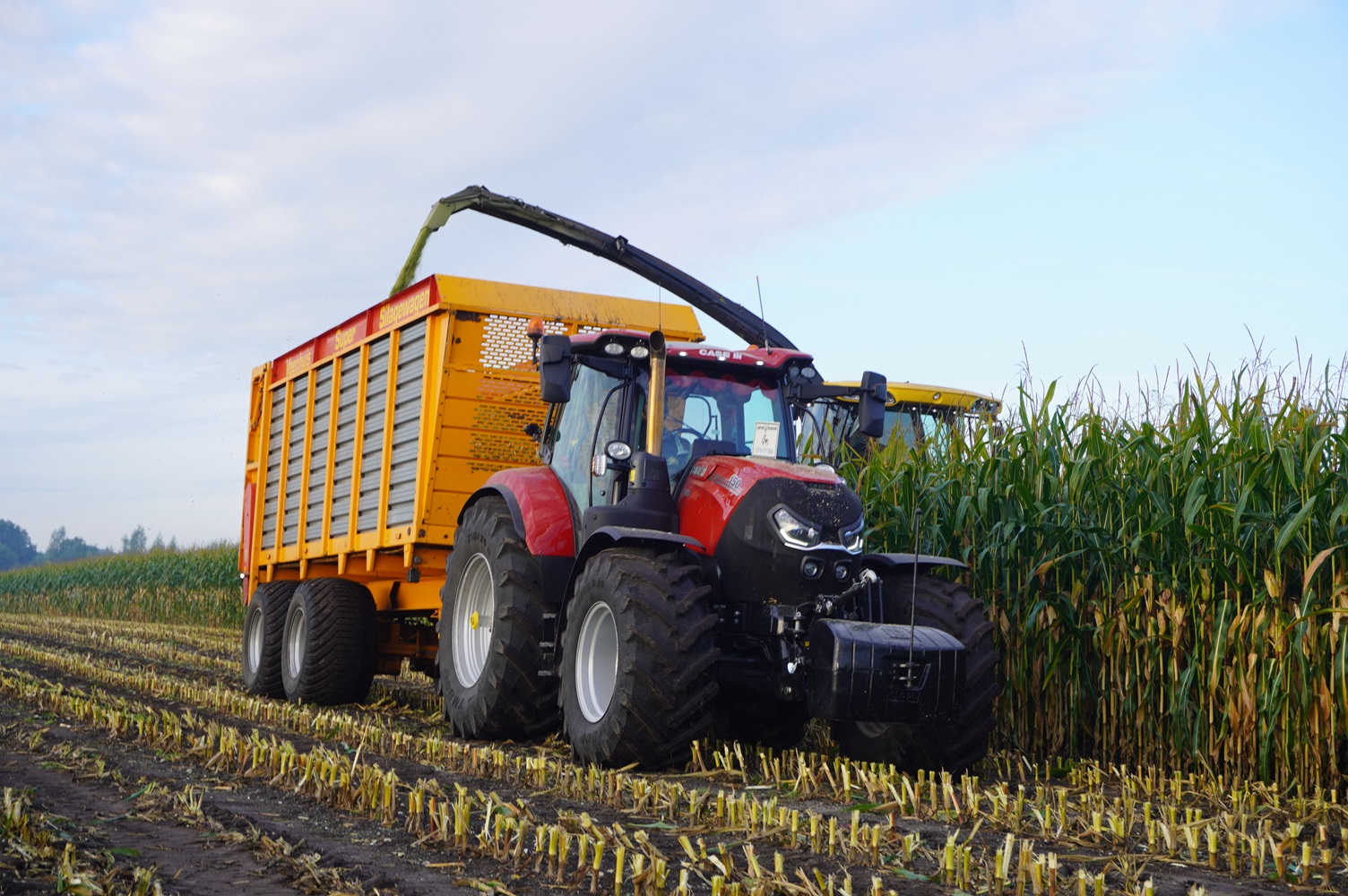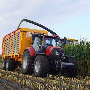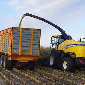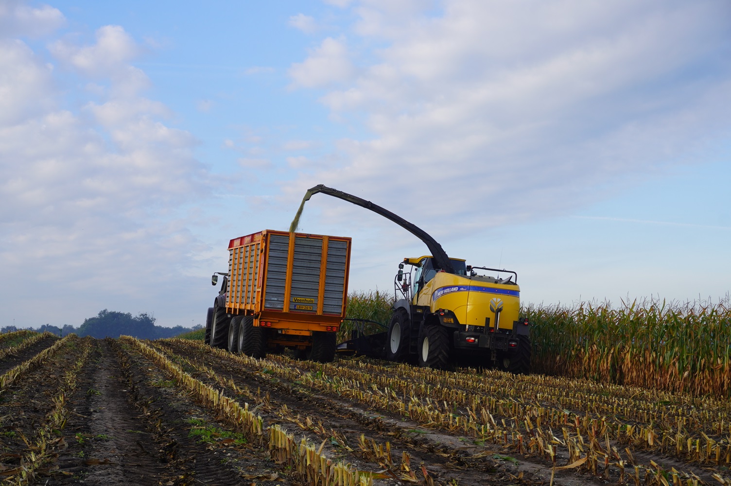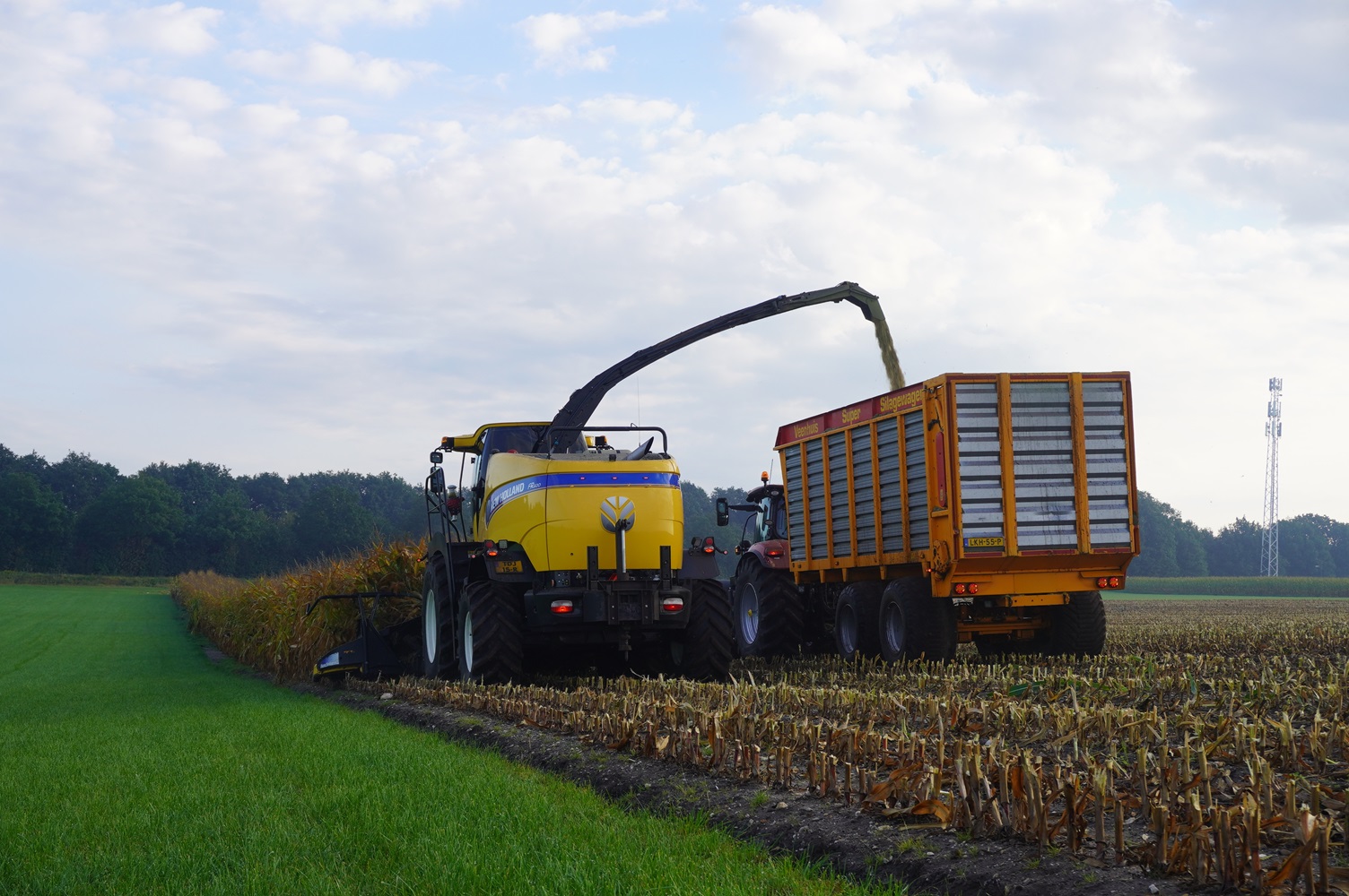 Loonbedrijf Nap uit Ede (GD)/ NLR Agri aan het maïs hakselen met een New Holland FR600, Valtra T215 en Case IH Puma 150 met Veenhuis Super-silagewagens.