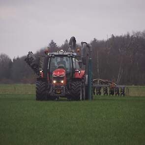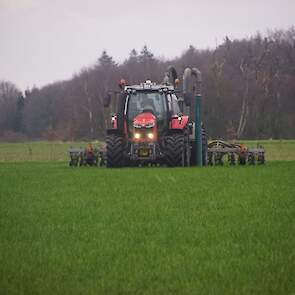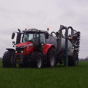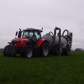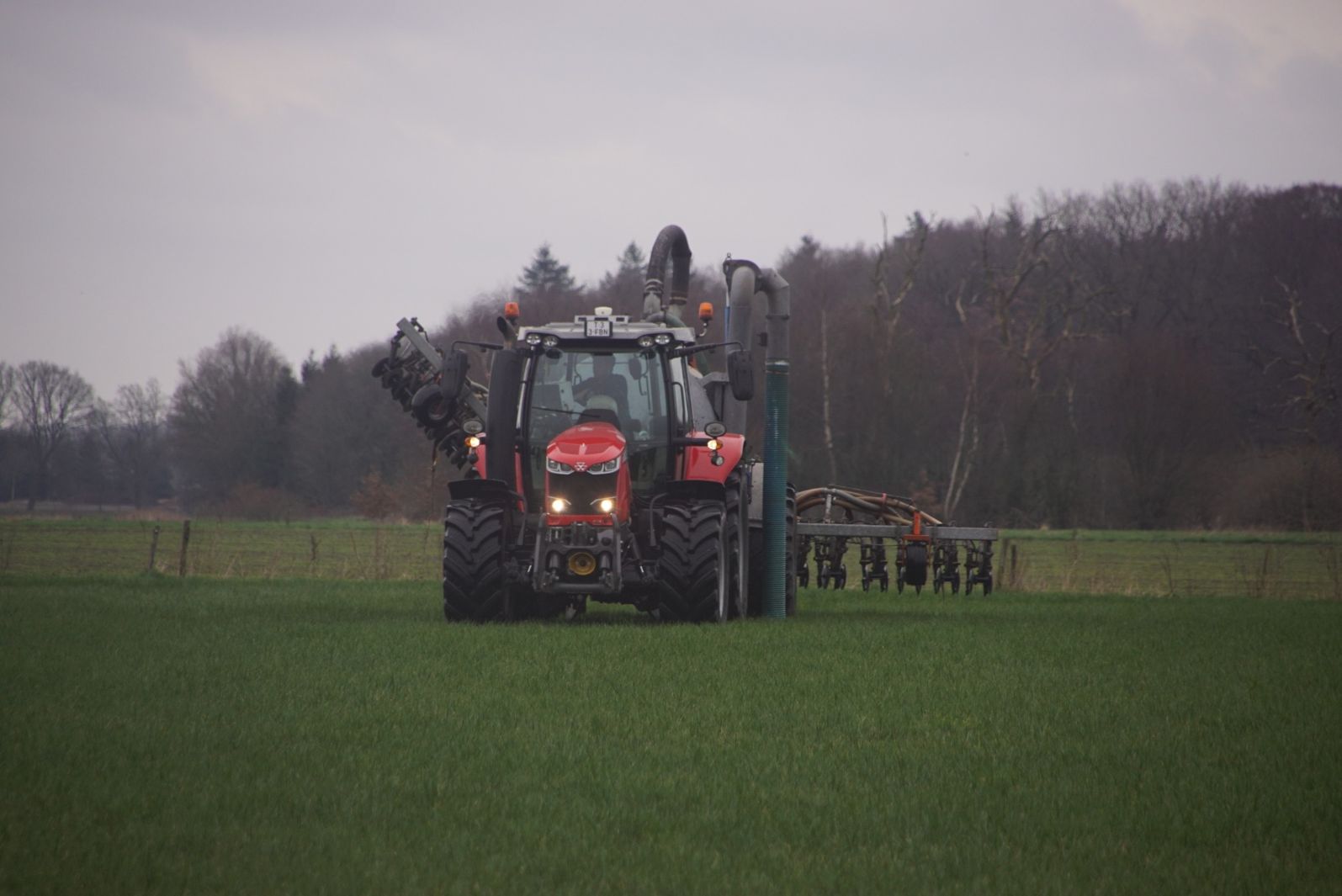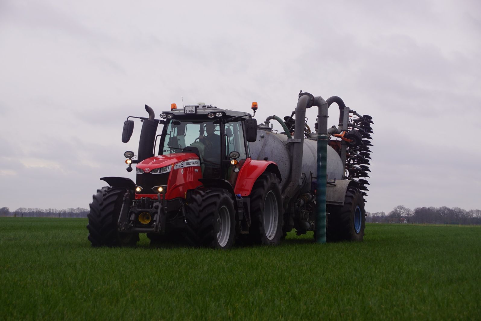 Grasland bemesten met Massey Ferguson 7718 S Dyna VT