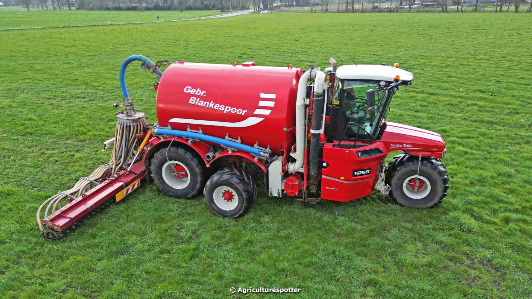 Al vroeg in de ochtend, voordat het weer ging regenen, was loonbedrijf Gebr Blankespoor BV uit Harskamp (GD) aan het grasland bemesten met hun Vervaet Hydro Trike en een Vredo-zodebemester. Het transport werd gedaan met de bekende Volvo-trucks.