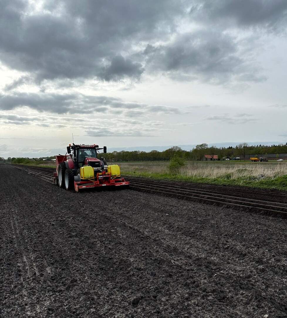 Hier een beeld wat we liever niet willen zien. Op dezelfde dag de aardappels van de oogst 2023 rooien en de aardappelen voor seizoen 2024 in de grond stoppen. Hopend op een beter seizoen, alleen de start is op dit moment al niet te best.