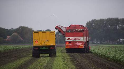 Bieten oogsten in hondegangAgrifac Hexa-zelfrijder aan het suikerbieten rooien.15 december 2023Machines & Werktuigen