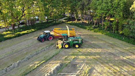 Gras hakselen en inkuilen in de avonduren in ElspeetGras hakselen en inkuilen met een John Deere 6850 van Loonbedrijf P. van den Hardenberg10 juni 2021Machines & Werktuigen