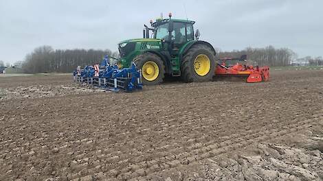 De primeur op het gebied van zaaibed bereidingKuhn HR 6040-rotorkopeg en VSS-frontegalisator voor loonbedrijf Westra 5 april 2021Machines & Werktuigen
