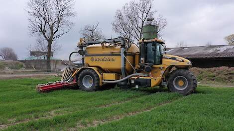 Vredo VT3306 met 20500Z-tankoplegger en bouwlandbemesterLoonbedrijf van den Brink uit Hattem aan het bouwland bemesten 8 april 2021Vredo