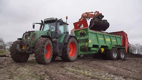 Compost verspreiden met Fendt 818 en Hawe-strooierDe Doosan DX140 W mobiele kraan laadde de wagen snel vol om daarna de compost op de akker te verspreiden15 maart 2021Machines & Werktuigen