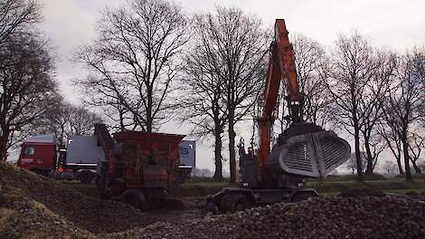 Zetmeelaardappelen laden voor de AvebeDe Hitachi ZA X 170 W laadt de aardappelen op de transporteur, die ze vervolgens op de vrachtwagen laadt voor transport naar de fabriek van Avebe om daar verwerkt te worden tot zetmeel 8 februari 2021Machines & Werktuigen