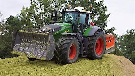 Loonbedrijf Jansen met Fendt 1050 op de maïsbultGroot materiaal bij loonbedrijf Jansen uit Tiendeveen (DR) in de maïsoogst in voormalig Oost-Duitsland, waar zij ook actief zijn met hun loonbedrijf. 3 oktober 2021Fendt