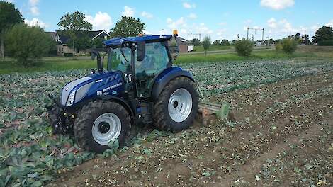 New Holland T6020 loof vernietigen met de Loof-DoesAardappelen klappen en spuiten door loonbedrijf Poland uit Waarland20 augustus 2019New Holland