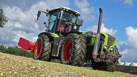 Claas Xerion 3800 Trac VC op de maiskuilLoonbedrijf J. de Heus uit Langbroek is ook weer begonnen met mais hakselen met een John Deere 8500i15 september 2020Trekkers