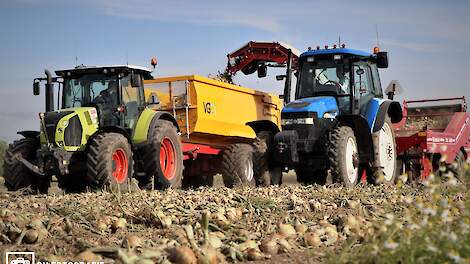 John Deere 8RX en John Deere 7RDe nieuwe John Deere-trekkers in actie met zes meter brede Imants-spitmachine en Lemken Karat 4 augustus 2020John Deere