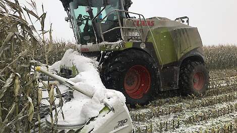 Worstelen in de maisH.S. Agri uit Zuidlaarderveen (DR) met de Claas Jaguar 940 onder zware omstandigheden bezig met de laatste mais 2 november 2019Case IH