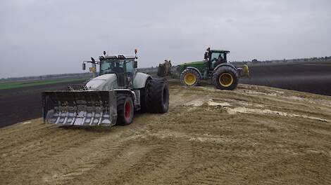 Maiskuil aanrijden XXL met John Deere 8345R en Fendt 927Biogasbedrijf Kloosterman druk met het maken van een mega maiskuil 3 november 2019Trekkers