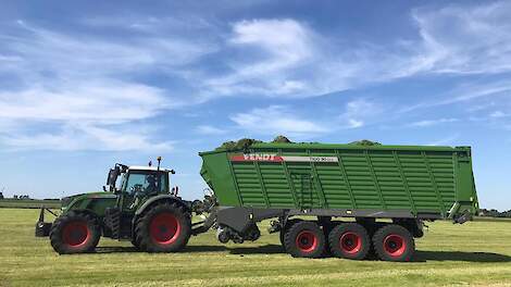 Fendt 724 Vario met nieuwe Fendt Tigo 65 XR-DLoonbedrijf Post uit Eemnes (UT) aan het gras oprapen met een Fendt 724 Vario23 mei 2021Fendt