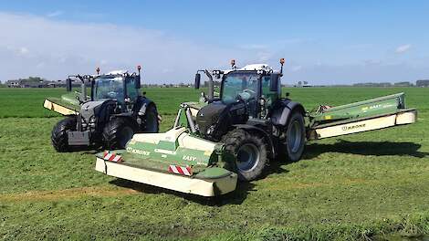 Eerste snede gras maaien met nieuwe Vicon-triplemaaierEerste snede gras maaien door landbouwbedrijf Jan Bakker28 april 2021Fendt