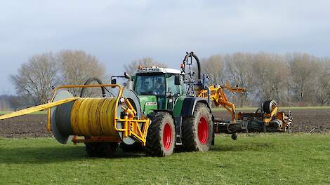Fendt 926 Vario TMS en Tjalma Agrometer-sleepslangbemesterLoonbedrijf Johan Frens uit Hulshorst (GD) aan het sleepslangbemesten18 februari 2021Fendt