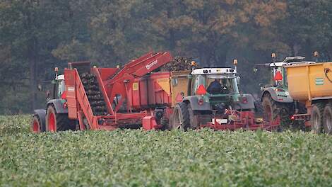 Tweefasen suikerbieten rooienLoonbedrijf Schepers uit Oosterhesselen aan het tweefasen suikerbieten rooien29 november 2020Fendt