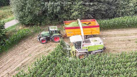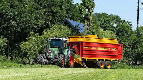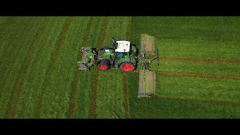 Bmww Agriservice met Fendt-hark, Fendt-trekkers en Fendt Katana 65 in het grasDe Kaweco-wagens worden gevuld door de grashakselaar van Fendt, de Katana 65 15 juli 2020Fendt