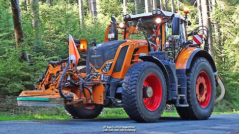Fendt 824 Vario en Mulag-maaierBermen maaien in Nordrhein Westfalen met deze prachtige oranje Fendt-combinatie 8 augustus 2020Fendt
