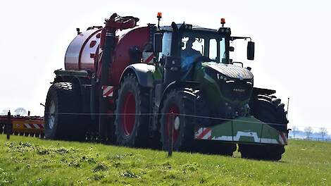 Fendt 1050 met Schuitemaker Robusta grasland bemestenLoonbedrijf Peter Ziel aan het grasland injecteren 8 april 2020Fendt