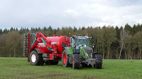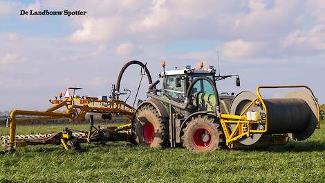 Loonbedrijf Visch B.V. uit Doornspijk (GD) aan het sleepslangbemestenTwee maal een Fendt 824 in actie bij het sleepslangen 9 maart 2020Fendt