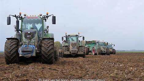 Mest strooien en spitten met 4x Fendt door Jan Bakker en Van het GoorMest strooien en spitten bij landbouwbedrijf van Jan Bakker in Dronten 15 november 2019Fendt