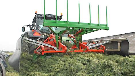Holaras-kuilverdeler en Volvo L60F op de kuilbultHolaras-inkuilmachines, specialisatie loont22 mei 2019Holaras