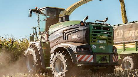 Krone BiG X 780 met EasyCollect 750-2 10-rijige maïsbekMaïs hakselen in Nieuw-Milligen met een Krone BiG X 780 met een EasyCollect 750-2 10-rijige maïsbek van KWB Agri. Het transport werd gedaan met vele verschillende Fendt- en Deutz-Fahr-tractoren. 3 november 2025Krone