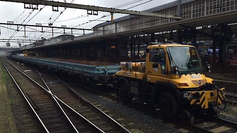 Unimog met railonderstel trekt met gemak 1200 ton wegUnimog met railonderstel trekt met gemak 1200 ton weg31 juli 2016Trekkers