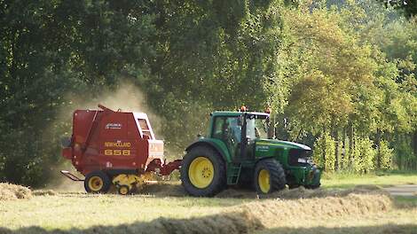 Hooi in ronde balen persen met John Deere 6820 en New Holland 658 persHooi in ronde balen persen met John Deere 6820 en New Holland 658 pers22 juli 2014Trekkers