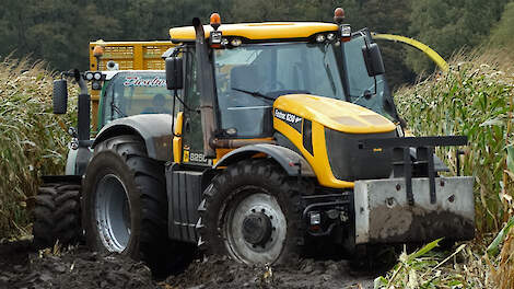 JCB Fastrac 8250 Vario van Kroes modderen in de maisJCB Fastrac 8250 Vario van Kroes modderen in de mais 4 november 2013Trekkers