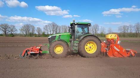 Deze demo Oxbo-zelfrijder van E. Engbers Soehne GmbH uit Uelsen, Duitlsand, met daarachter de Volmer Engineering-mestinjecteur is dit voorjaar bezig om demo's te doen bij de eindgebruikers.