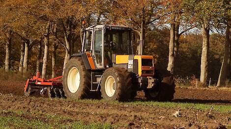 Maïsland schijveneggen met Renault 155.54 TurboFouragehandel Gebr.Ballast VOF aan het maïsland bewerken met een Evers Skyros en een Renault 155.54 Turbo.27 november 2021Trekkers