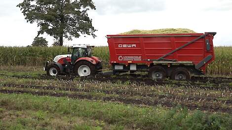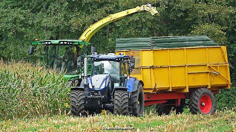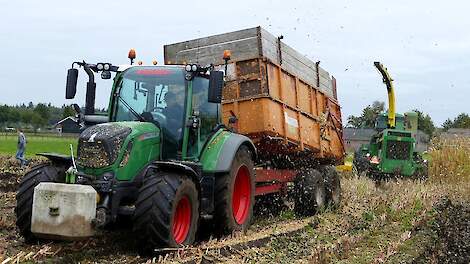 Bloemendal Dienstverlening uit Elspeet (GD) aan het modderen tijdens het maïs hakselen met een John Deere 6850, Fendt 313 Vario met Miedema, Fendt 312 Vario TMS met Beco en Fendt Farmer 308/90 met Vaia.