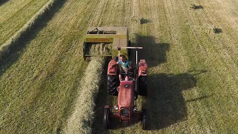 Grasoogst met klassieke Güldner-tractoren.Tijdens de grasoogst van 2020 is Tim Goering druk bezig 23 juni 2020Trekkers