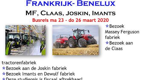 Fabrieksreis naar Massey Ferguson - Claas - Joskin - Imants - DewulfTrekkerskieken maandag 23 maart - donderdag 26 maart 202015 januari 2020Trekkers