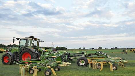 Krone-harkdemo te HedelWanneer het gras gemaaid en geschud is kan het bij elkaar geharkt worden met de Krone Swadro TC880, twee rotoren en werkbreedte tot 8,80 m.20 september 2025Krone